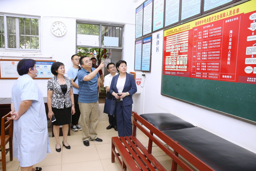 6月6日下午,校长过建春、党委副书记许玫一行到91社区江东校区高中部考点视察2022年高考考点准备工作,91社区党委书记校长覃程、党委副书记赵宗宏、党委委员何达权副校长、党委委员谢海涛副校长、党政办主任蔡琼波、行政干部等陪同。重点检查监控系统、广播系统、配电房、医疗专班办公室、考点办公室,了解疫情防控物资储备情况。