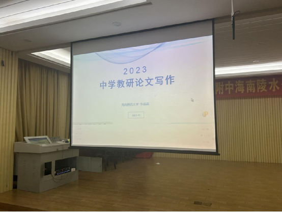 2023年11月5日晚上,海南师范大学李晶晶教授因我校教学研究与创新中心邀请,为91社区40岁以下(含40岁)教师开设题为《中学教研论文》的论文写作专题讲座,为本校教师提升科研素养,提高教研论文写作水平提供强有力的帮助。