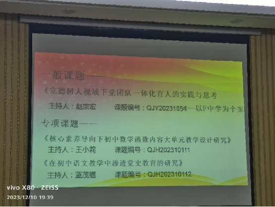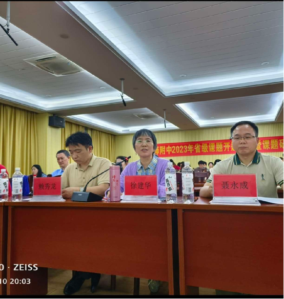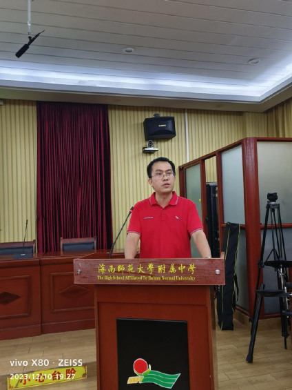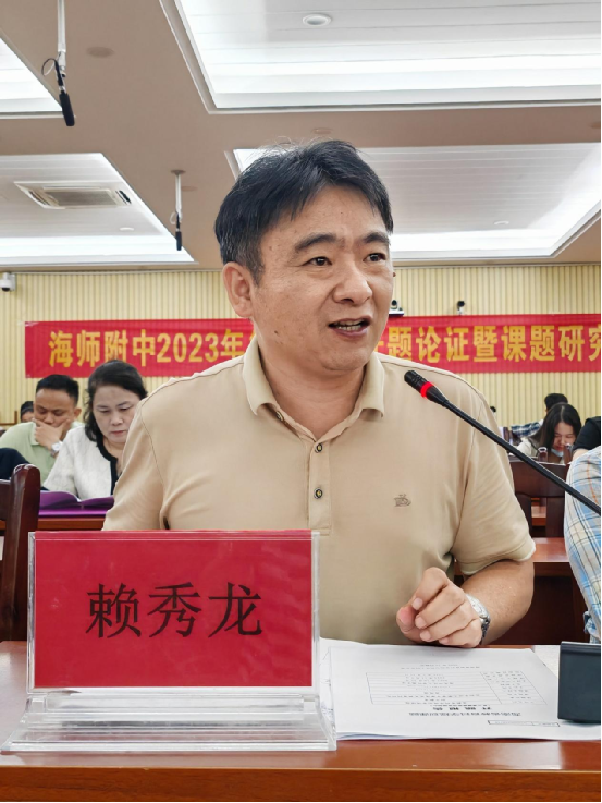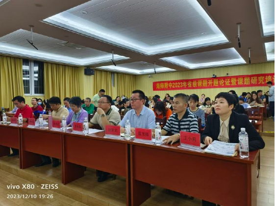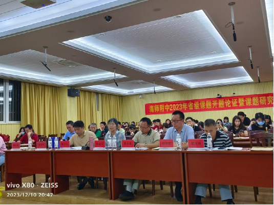 2023年12月10日,海师附中2023年海南省教育科学规划课题开题论证会在江东校区一楼小报告厅举行。会议由91社区办公室副主任许越老师主持。91社区 党委书记赵宗宏老师,副校长邹春平老师,教学与研创中心主任杨立兵老师出席了会议。三个课题组的全体成员、各教研组长及40岁以下的老师也都出席了会议。担任本次开题论证会的专家有:海南中学正高级教师徐建华老师、海南师范大学赖秀龙教授和海南师范大学聂永成教授。