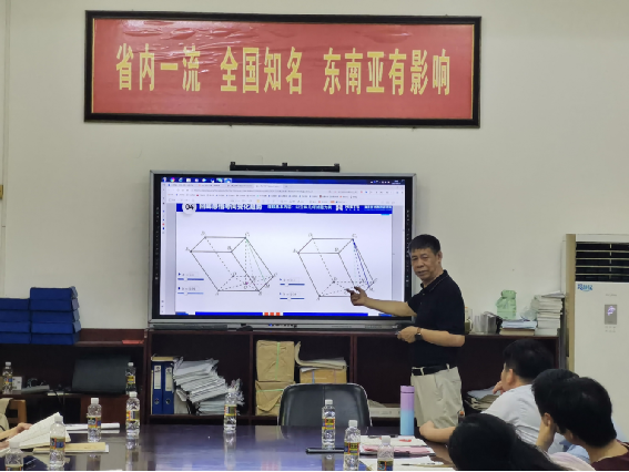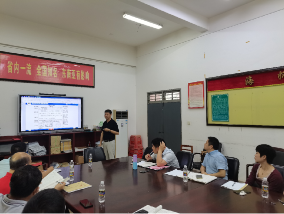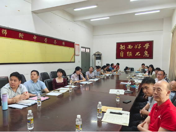 在李红庆老师的讲解指导下,海师附中数学组全体老师或详细记录高考内容如何深度融合学习的方法,或认真思考新教材新高考新试题结构所带来的挑战,或小声讨论对高考数学复习的理解。