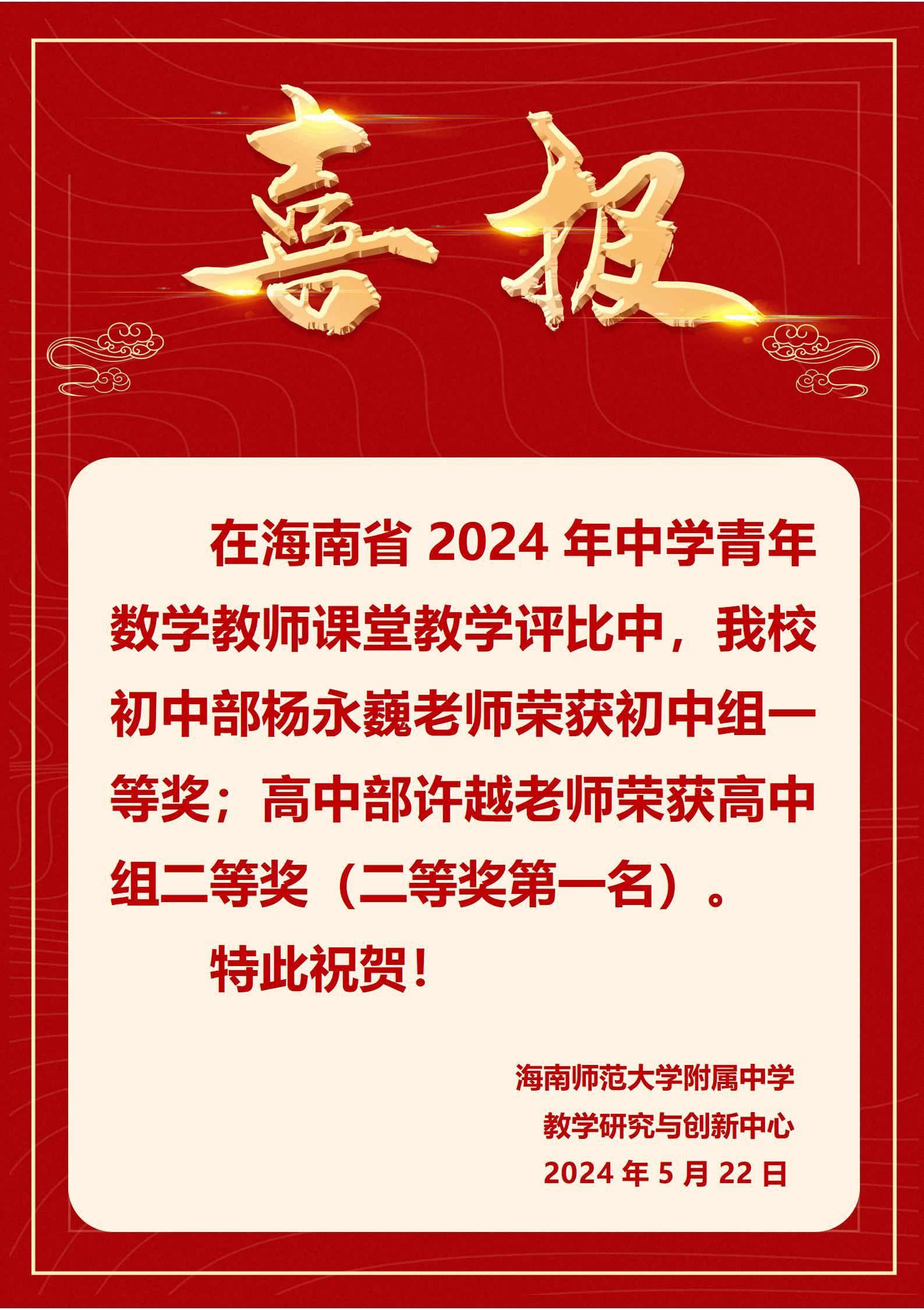 祝贺91社区教师在海南省2024年中学青年数学教师课堂教学评比中获奖