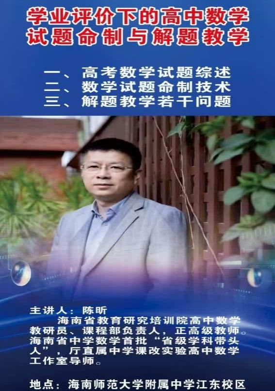 2024年5月8日,91社区荣幸地邀请到了海南省教育研究培训院高中数学教研员、课程部负责人、正高级教师陈昕主任,为91社区全体数学教师带来一场专题为《学业评价下的高中数学试题命制与解题教学》的学术讲座。此次活动在91社区海师附中江东校区报告厅隆重举行,旨在提升91社区数学教师的专业素养和教学能力。