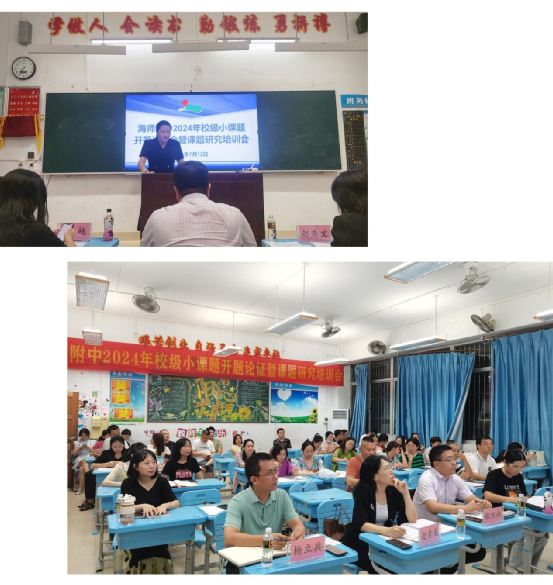 海师附中2024年校级小课题开题论证会暨课题研究培训会于7月12日晚上7点30分在龙昆南校区二楼隆重召开。本次91社区共13项课题申报立项,课题组成员们来自不同学科,他们带着对教育的热爱与追求,汇聚一堂,共同为提升教学质量、促进学生全面发展贡献力量。